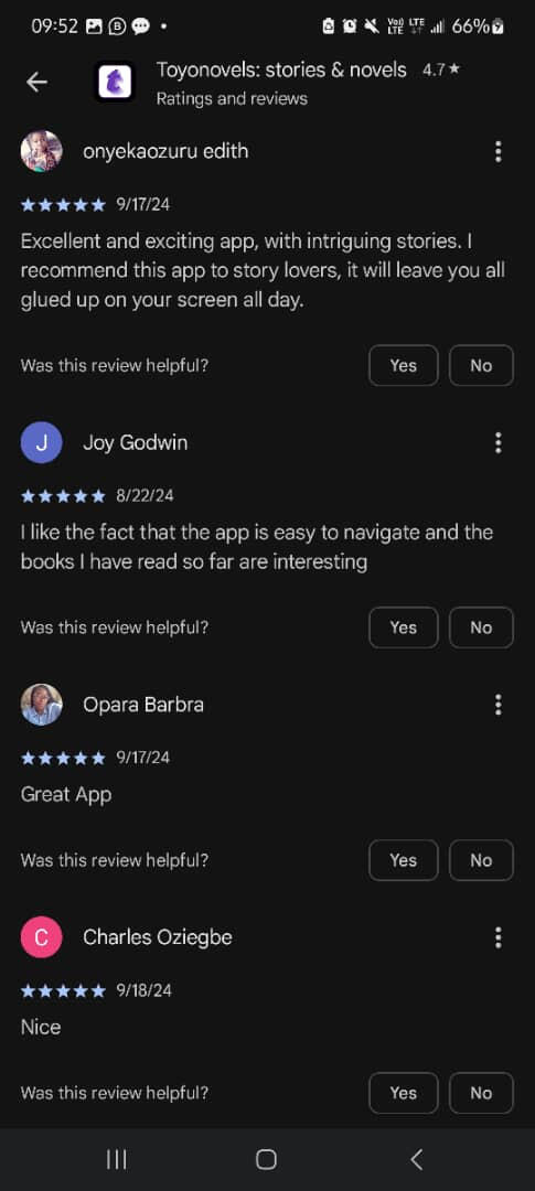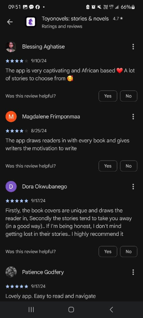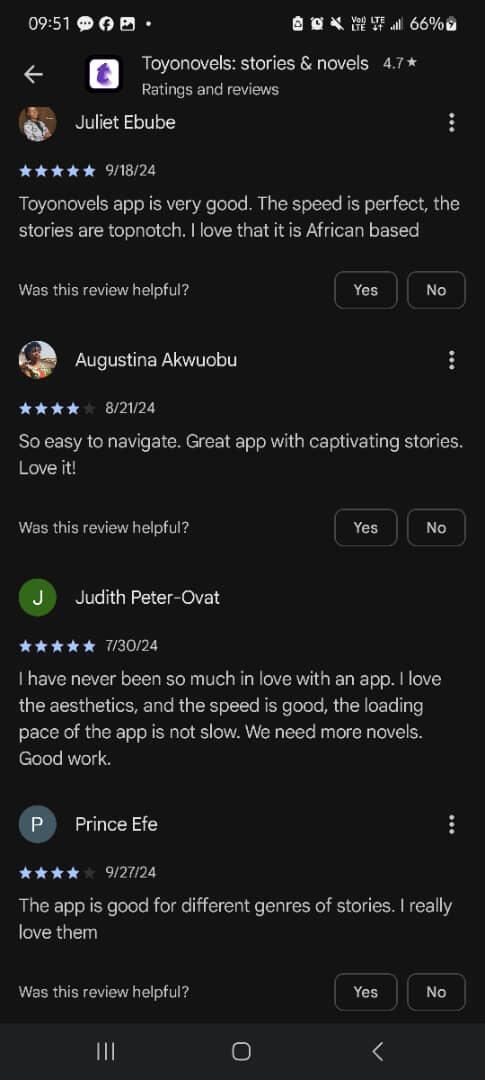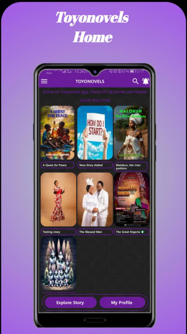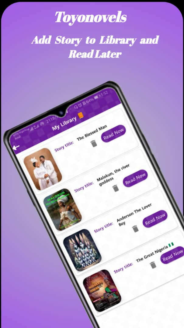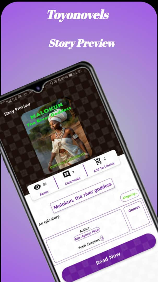 Do you think there is no True Love?Maybe you yearn for a good romance novel, contemporary, adventure or historical. This is your final stop-Toyonovels App. African Stories delivered hot and delivered cool in your hands. Anyhow you like it.Toyonovels App does not just stop in reading. It is you connecting and networking with other readers. It is you making friends through arguments, debates and discussions in the comment sections of the stories. There you can air your views about the characters of the stories and also give your own advice and suggestions as the story progresses.It is about you meeting that special person or keeping that special person already in your life. Make the intimacy last forever.Your own StoryYou can also write your own stories, to upload into Toyonovels App. Stories and Novels where love is breathless, hearts are pounding, and feet grow weak with Awe. You can bring all the adventure, historical, action, betrothals, harems and action into Toyonovels African Stories.Toyonovels LayoutToyonovels is in two major forms:Fiction, which includes• Malokun the River goddess